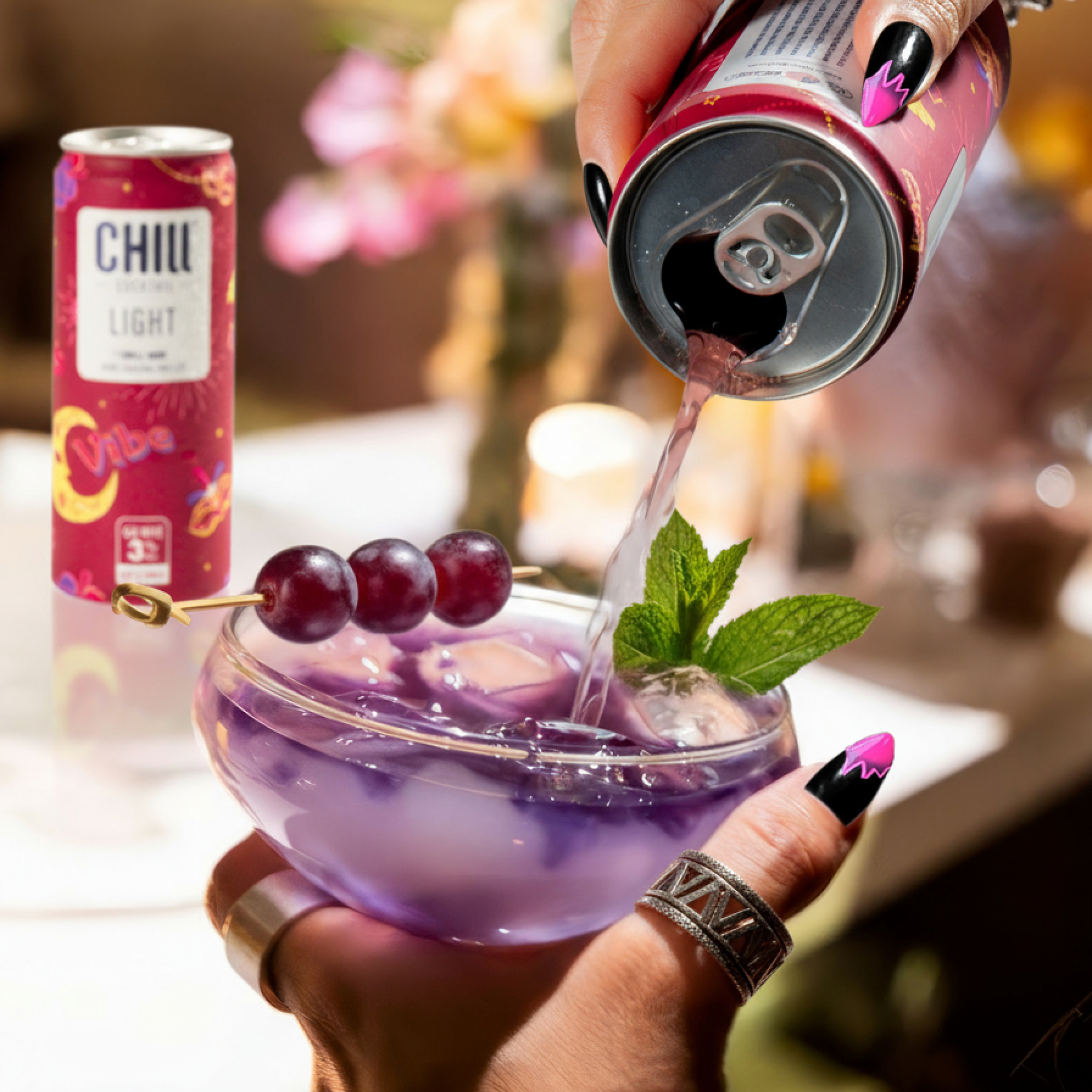 Rum nho là một sự hòa quyện kinh điển rất phổ biến của thế giới cocktail bởi vị ngọt đậm của nho và sự nồng ấm của rượu Rum. Chill Vibe đặc trưng bởi sắc tím dịu dàng nhưng lại đem đến cho bạn sự đam mê cuồng nhiệt của tuổi trẻ.